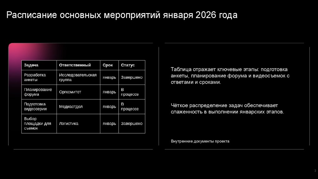 Расписание основных мероприятий января 2026 годаТаблица отражает ключевые этапы: подготовка