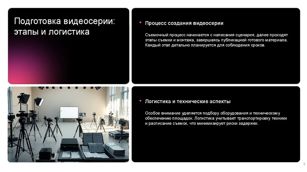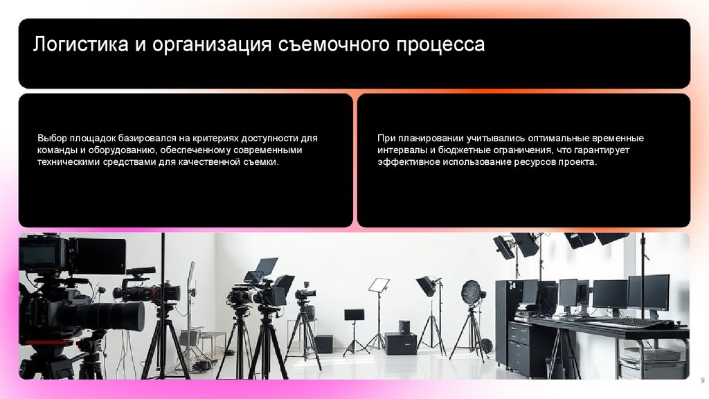 Логистика и организация съемочного процессаВыбор площадок базировался на критериях доступности для