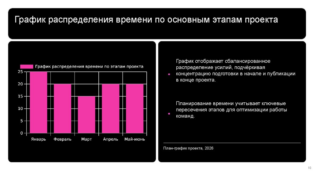 График распределения времени по основным этапам проектаГрафик отображает сбалансированное