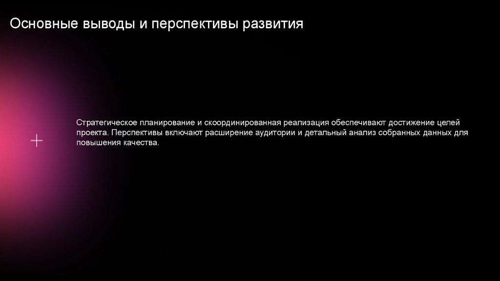 Основные выводы и перспективы развитияСтратегическое планирование и скоординированная реализация обеспечивают достижение целей