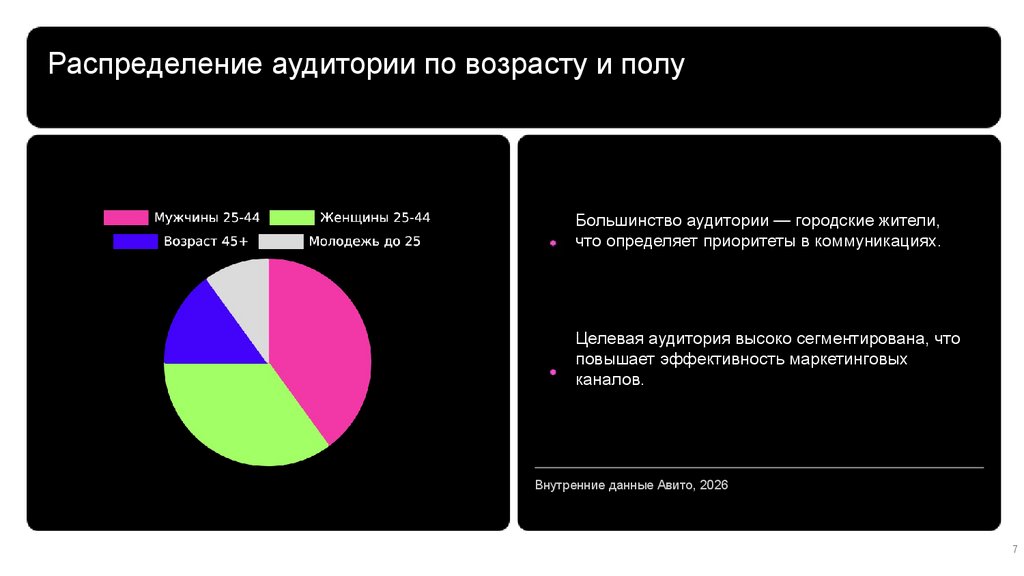 Распределение аудитории по возрасту и полуБольшинство аудитории — городские жители,