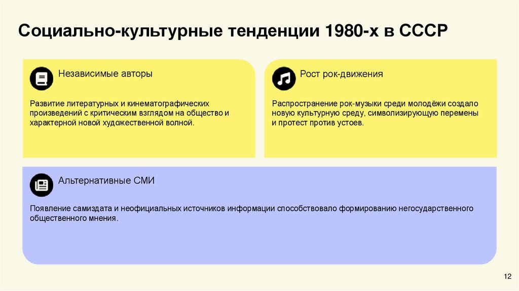 Социально-культурные тенденции 1980-х в СССРНезависимые авторы