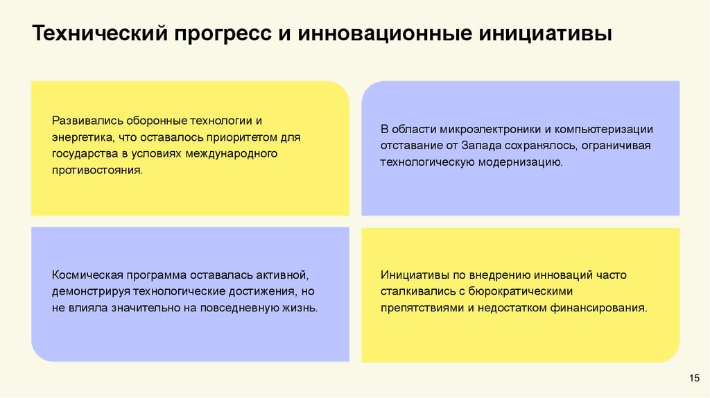 Технический прогресс и инновационные инициативыРазвивались оборонные технологии и
