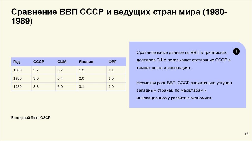 Сравнение ВВП СССР и ведущих стран мира (19801989)Сравнительные данные по ВВП в триллионах