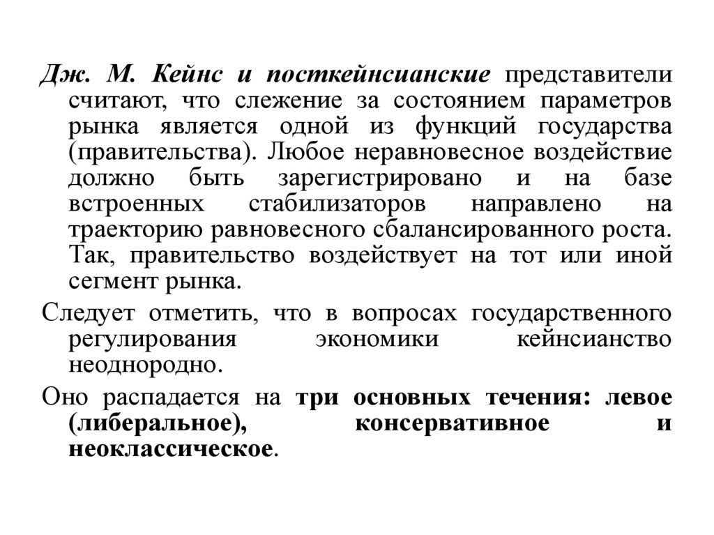 Дж. М. Кейнс и посткейнсианские представителисчитают, что слежение за состоянием параметров