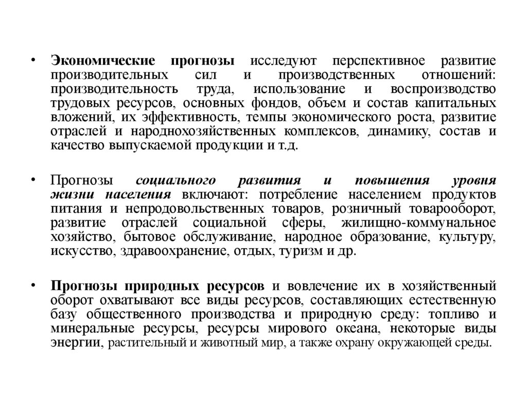 • Прогнозы природных ресурсов и вовлечение их в хозяйственный