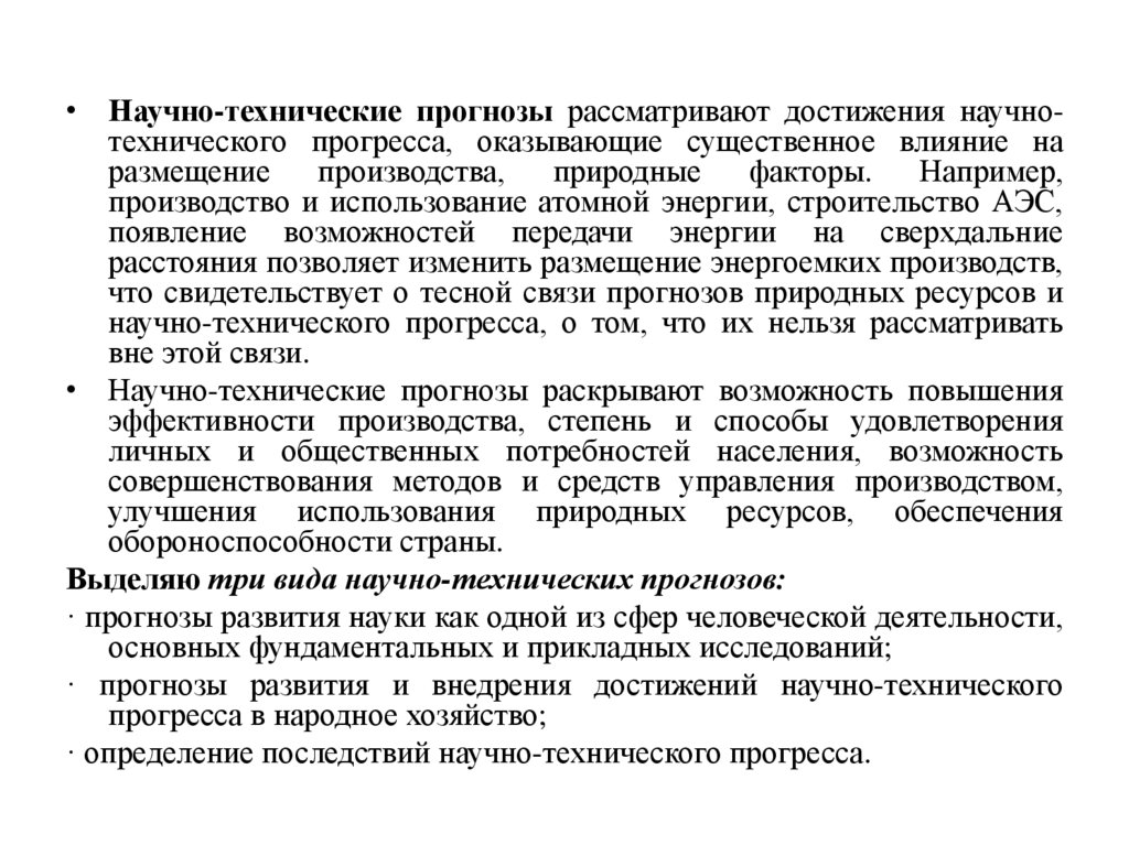 • Научно-технические прогнозы рассматривают достижения научнотехнического прогресса, оказывающие существенное влияние наразмещение