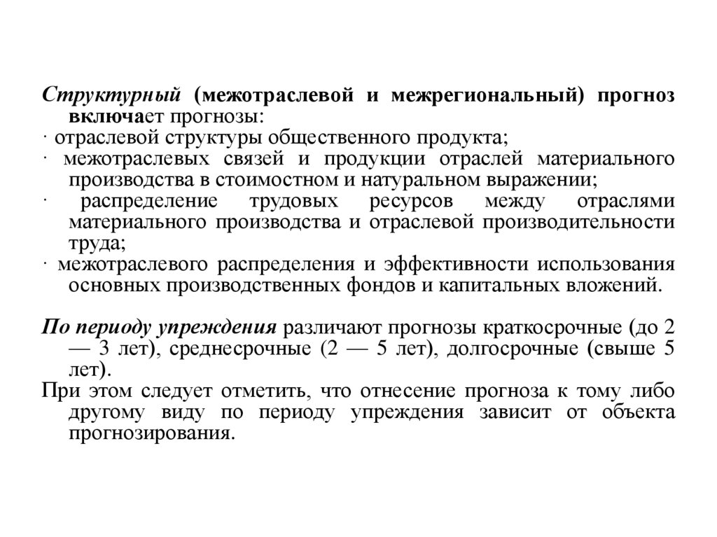 Структурный (межотраслевой и межрегиональный) прогнозвключает прогнозы: