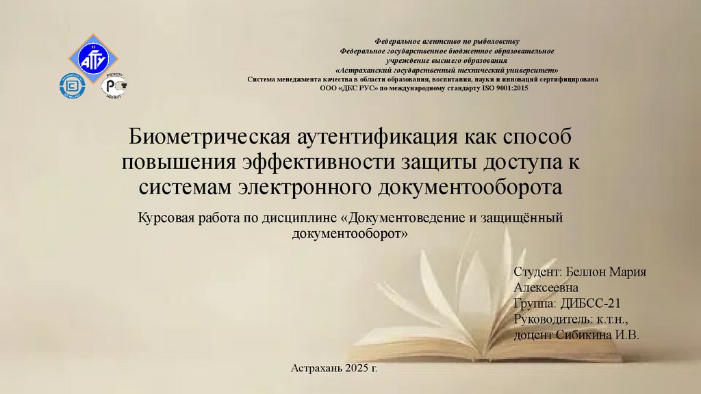 Курсовая работа по дисциплине «Документоведение и защищённый