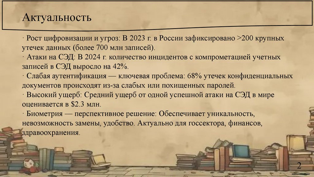 Актуальность· Рост цифровизации и угроз: В 2023 г. в России зафиксировано >200 крупных