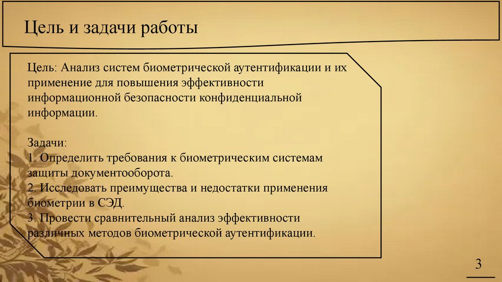 Цель и задачи работыЦель: Анализ систем биометрической аутентификации и их