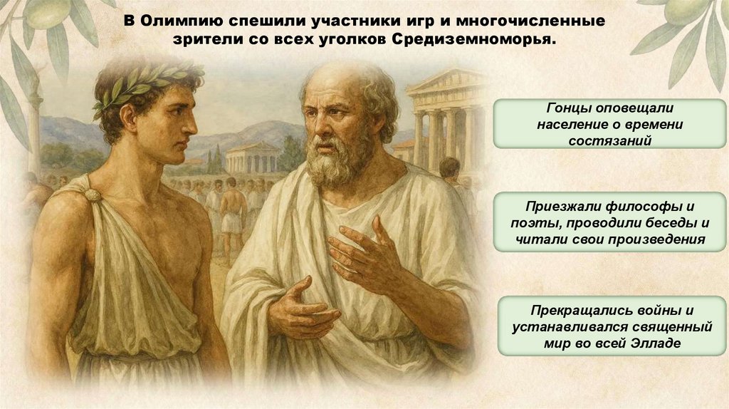 В Олимпию спешили участники игр и многочисленныезрители со всех уголков Средиземноморья.