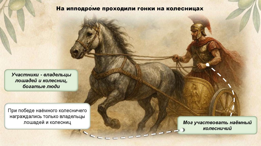 На ипподро́ме проходили гонки на колесницахУчастники - владельцы