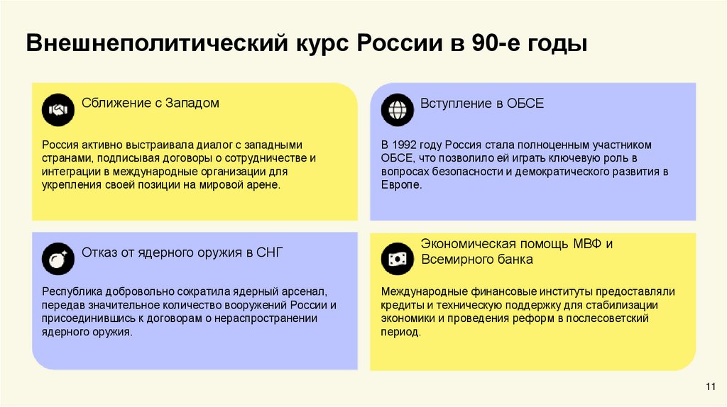 Внешнеполитический курс России в 90-е годыСближение с Западом