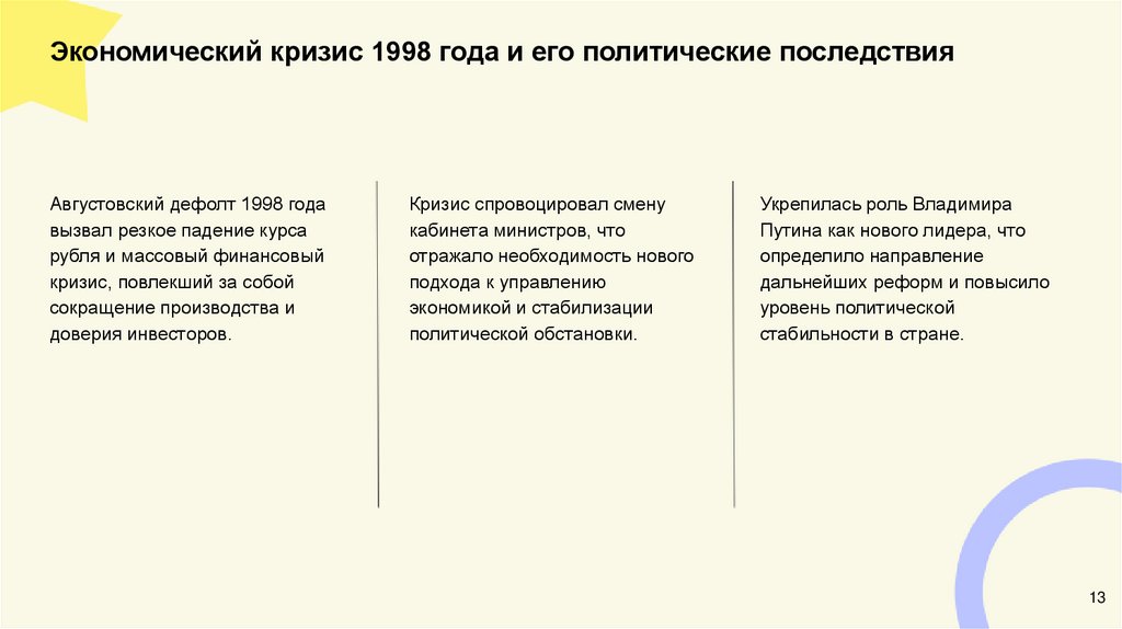 Экономический кризис 1998 года и его политические последствияАвгустовский дефолт 1998 года