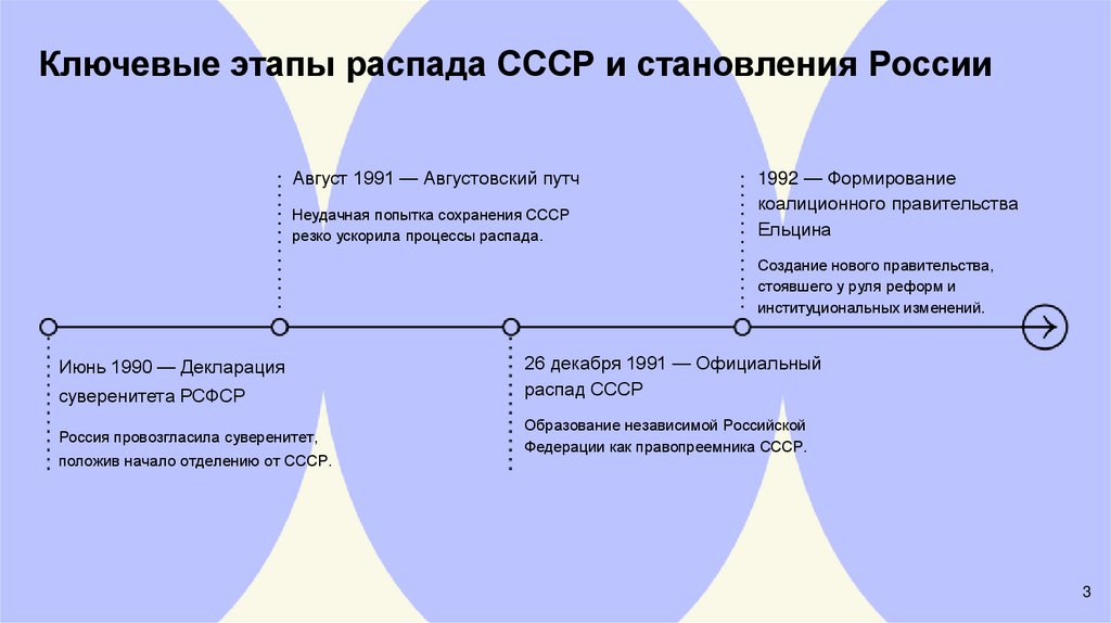 Ключевые этапы распада СССР и становления РоссииАвгуст 1991 — Августовский путч
