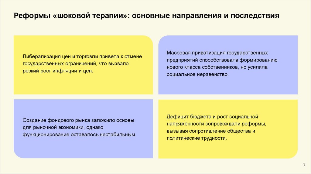 Реформы «шоковой терапии»: основные направления и последствияЛиберализация цен и торговли привела к отмене