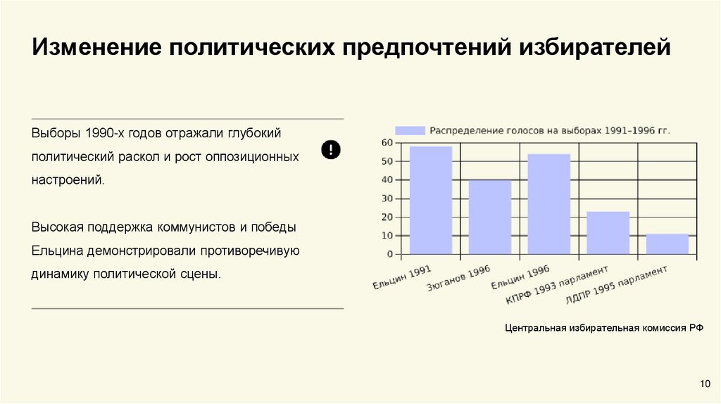 Изменение политических предпочтений избирателейВыборы 1990-х годов отражали глубокий