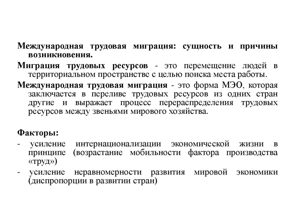• проявляется в межстрановом передвижении товаров и услуг, факторов