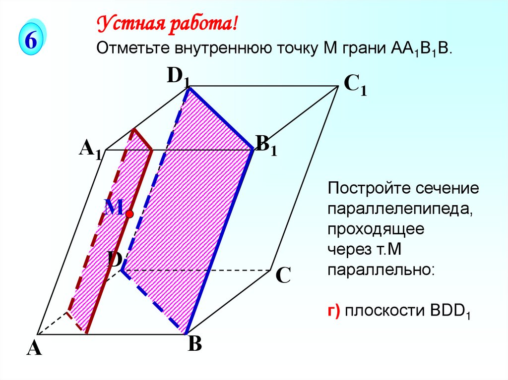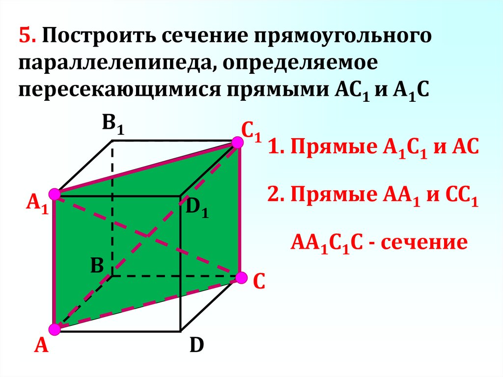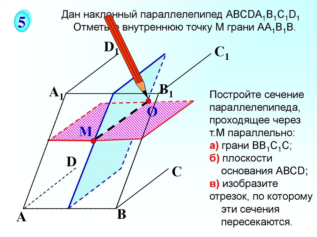 5. Построить сечение прямоугольногопараллелепипеда, определяемое
