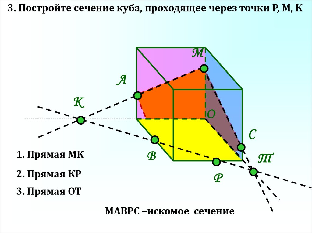 3. Постройте сечение куба, проходящее через точки P, М, КМ