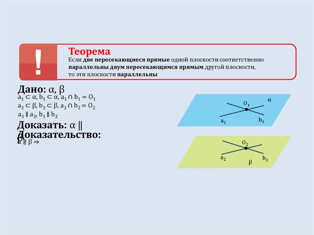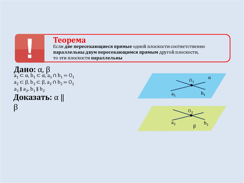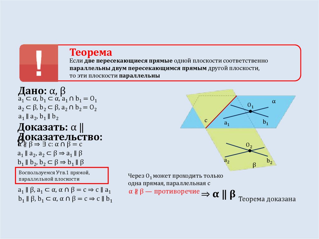 ТеоремаЕсли две пересекающиеся прямые одной плоскости соответственно