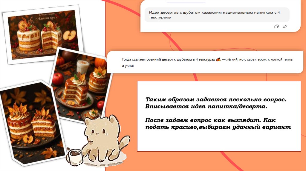 Таким образом задается несколько вопрос.Вписывается идея напитка/десерта.