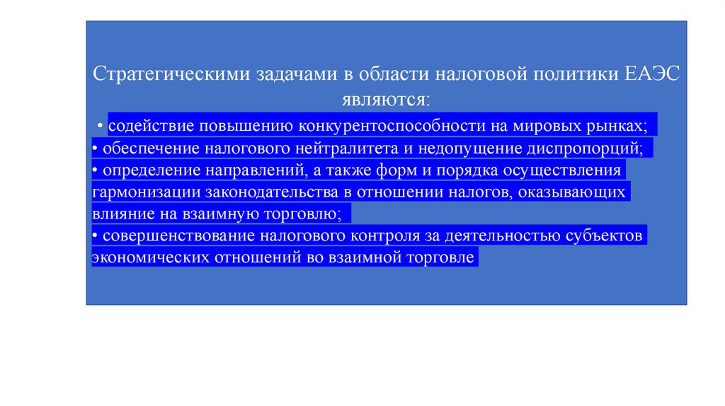 Стратегическими задачами в области налоговой политики ЕАЭСявляются: