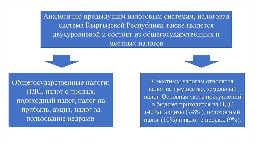 Аналогично предыдущим налоговым системам, налоговаясистема Кыргызской Республики также является