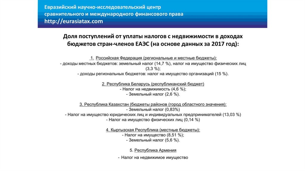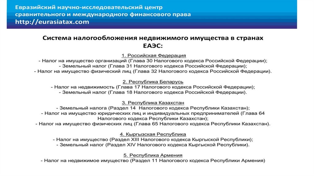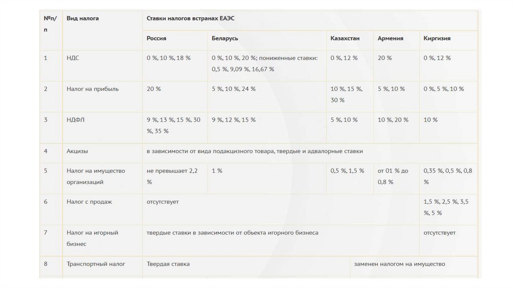 РФВ отличие от других стран-членов ЕАЭС налоговая система Российской