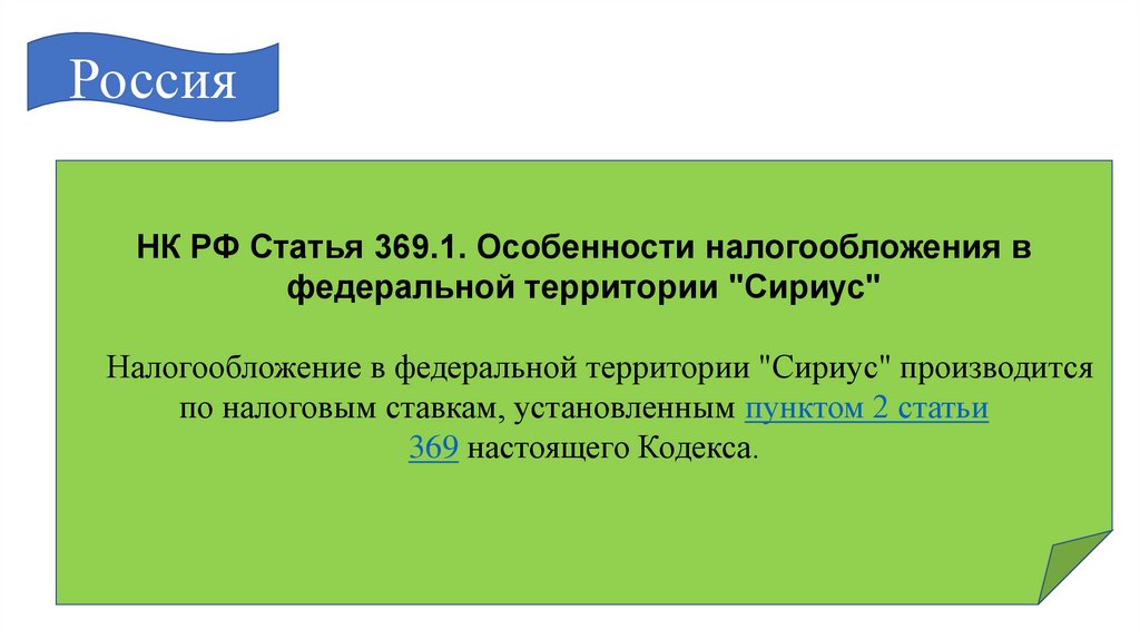 РоссияНК РФ Статья 369.1. Особенности налогообложения в