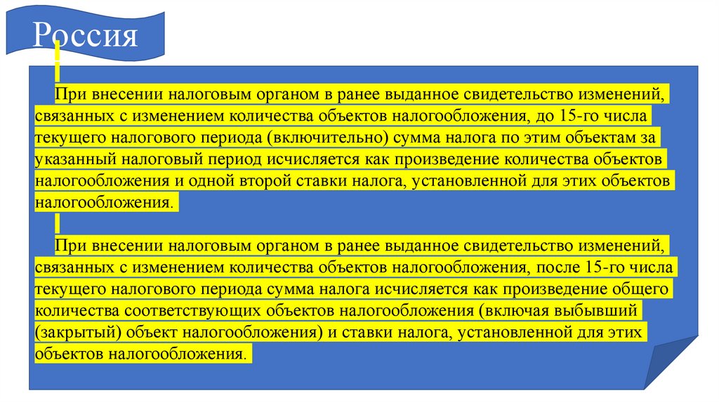 РоссияПри внесении налоговым органом в ранее выданное свидетельство изменений,