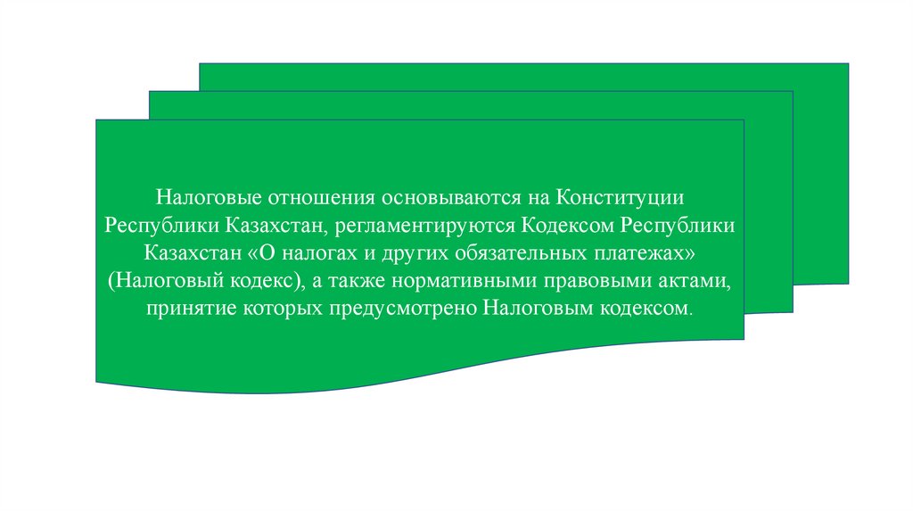 Налоговые отношения основываются на КонституцииРеспублики Казахстан, регламентируются Кодексом Республики