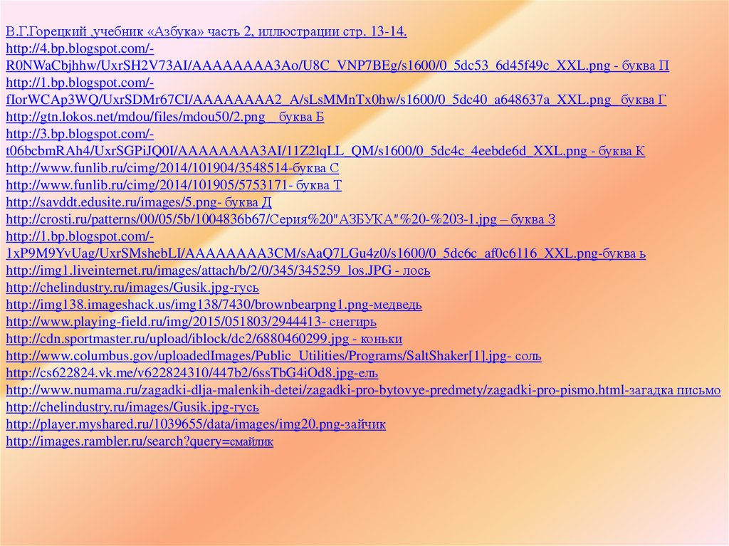 В.Г.Горецкий ,учебник «Азбука» часть 2, иллюстрации стр. 13-14.http://4.bp.blogspot.com/R0NWaCbjhhw/UxrSH2V73AI/AAAAAAAA3Ao/U8C_VNP7BEg/s1600/0_5dc53_6d45f49c_XXL.png - буква П