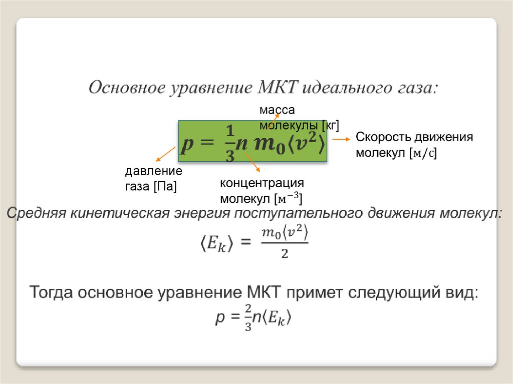 ОСНОВНОЕ УРАВНЕНИЕМОЛЕКУЛЯРНОКИНЕТИЧЕСКОЙ ТЕОРИИ