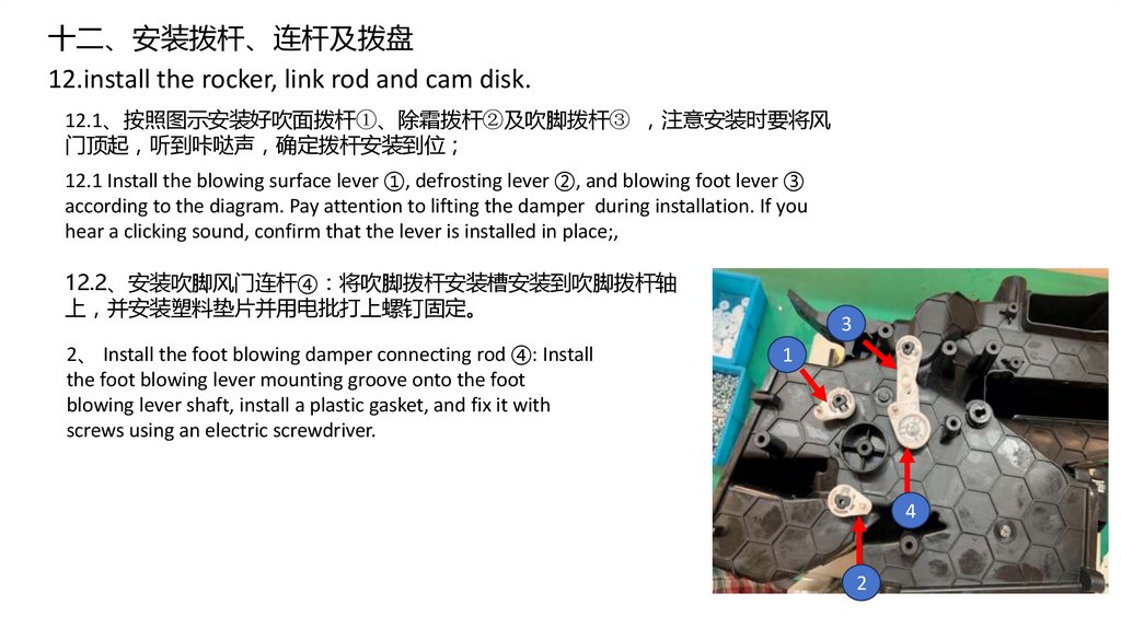 17.2、安装之前拆卸的出风口过渡风道安装到位4个卡扣卡到位安装紧