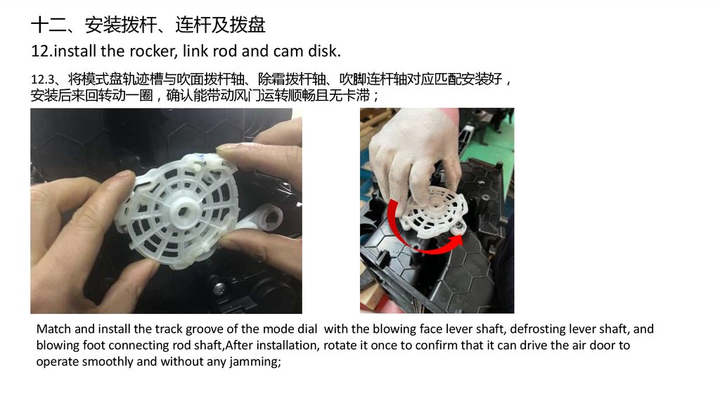 16.2、将分发器总成安装至之前拆下的进风口总成上注意槽合到位然后