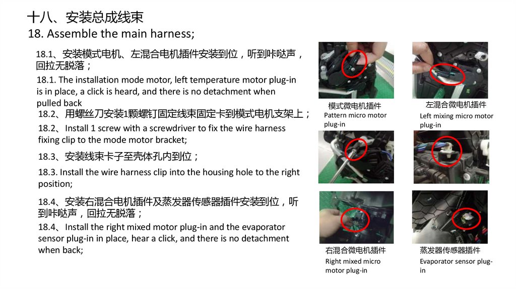 十八、安装总成线束18. Assemble the main harness;