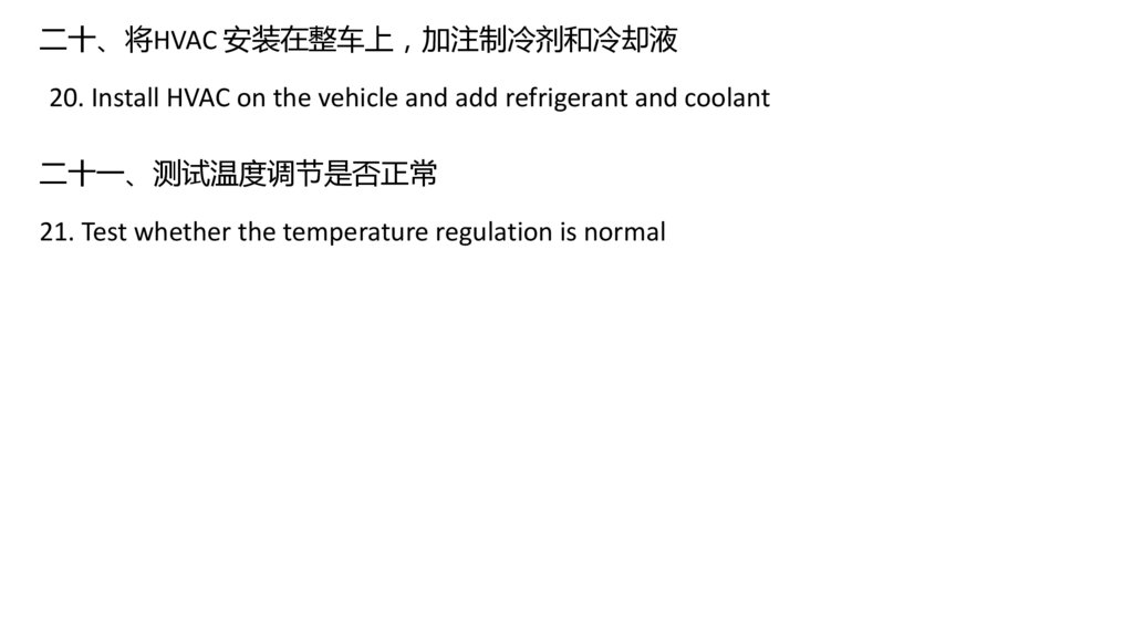 二十、将HVAC 安装在整车上 加注制冷剂和冷却液20. Install HVAC on the vehicle and add refrigerant and coolant
