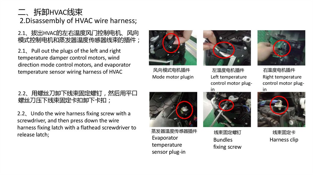 二、拆卸HVAC线束2.Disassembly of HVAC wire harness;