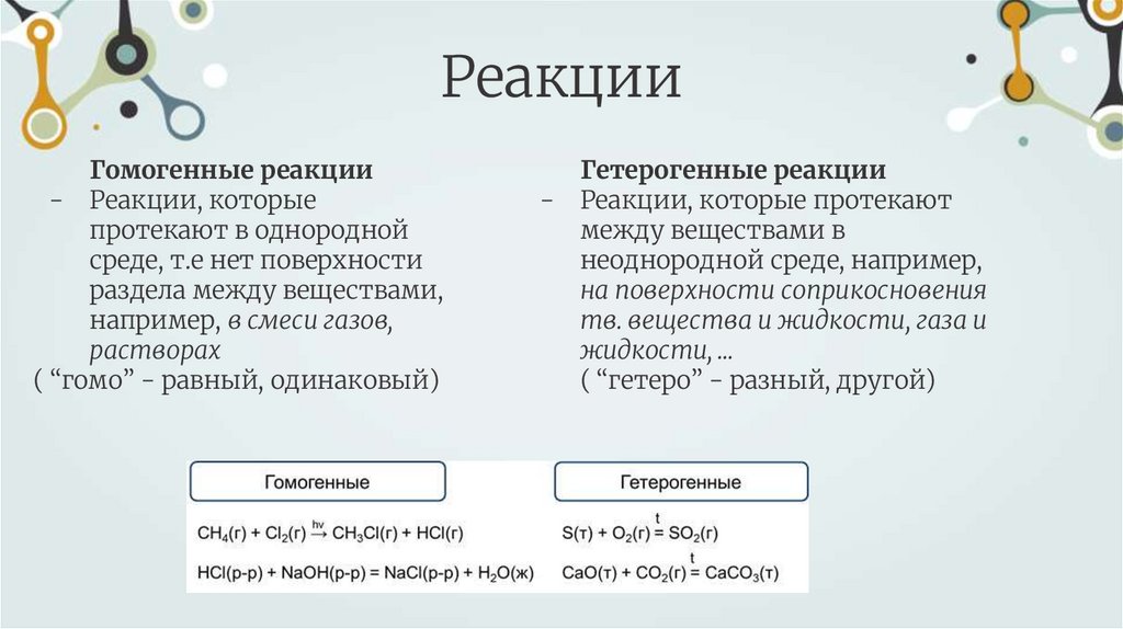 РеакцииГомогенные реакции