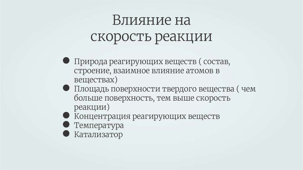 Влияние наскорость реакции