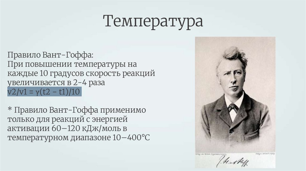 ТемператураПравило Вант-Гоффа: