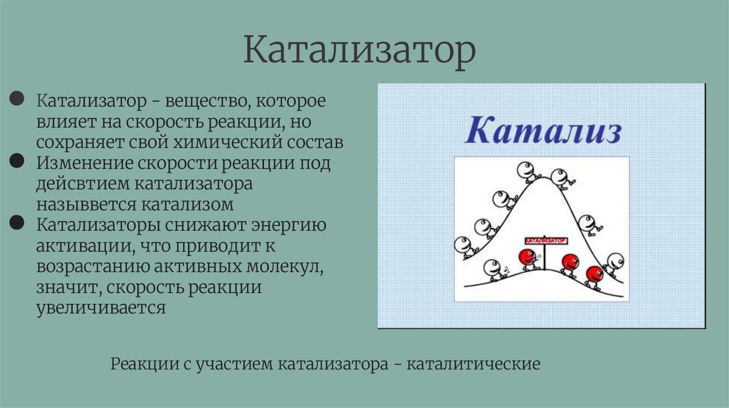 Катализатор● Катализатор - вещество, которое