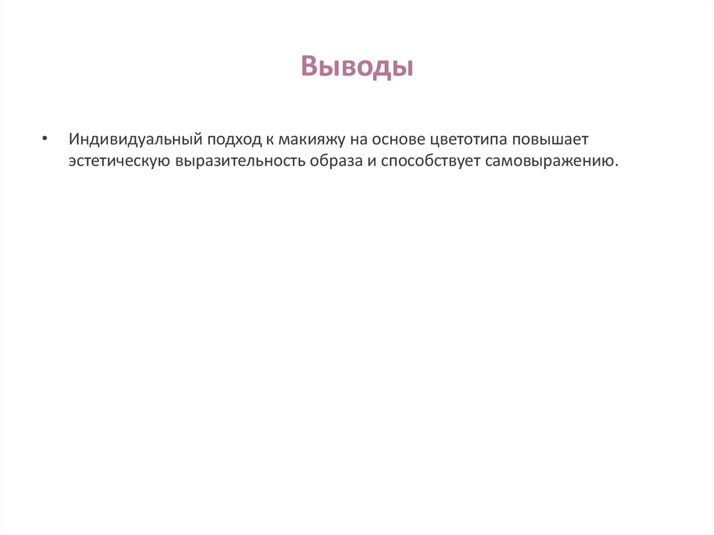 ВыводыИндивидуальный подход к макияжу на основе цветотипа повышает