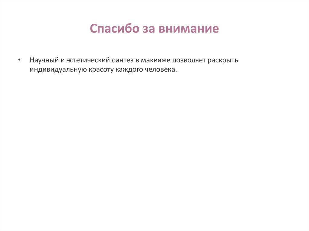 Спасибо за вниманиеНаучный и эстетический синтез в макияже позволяет раскрыть
