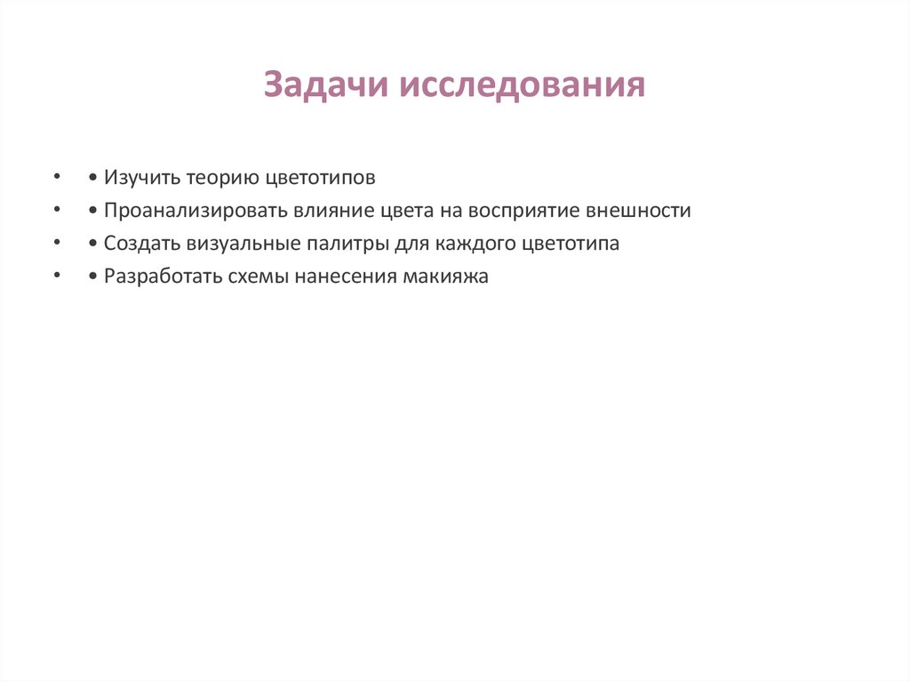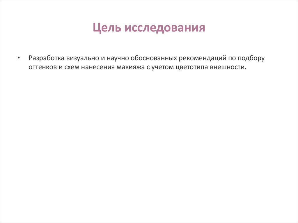 Цель исследованияРазработка визуально и научно обоснованных рекомендаций по подбору
