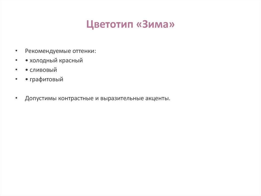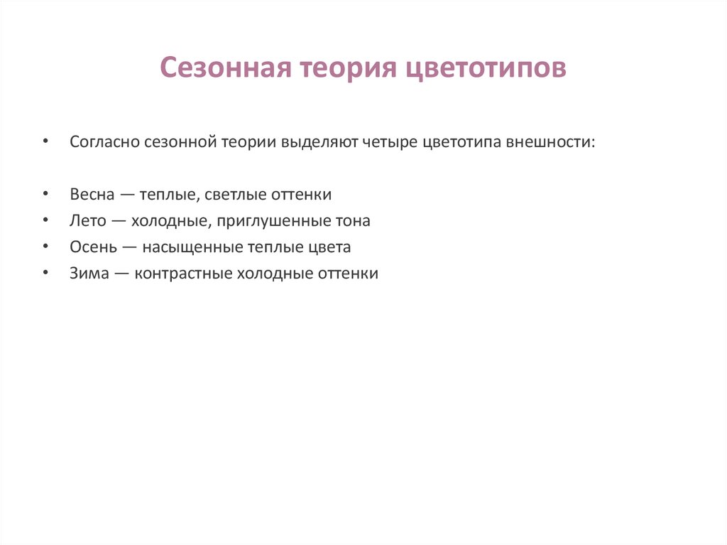 Сезонная теория цветотиповСогласно сезонной теории выделяют четыре цветотипа внешности: