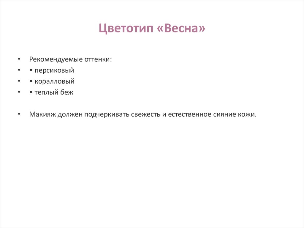 оттенков и схем нанесения макияжа с учетом цветотипа внешности.