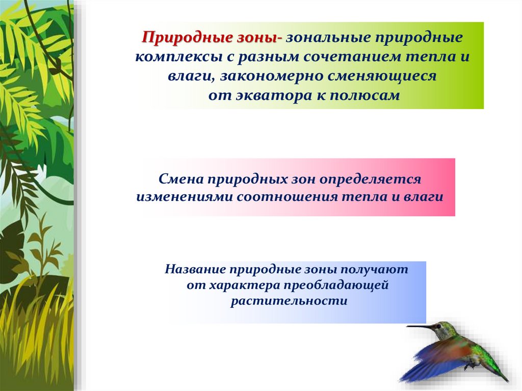 Природные зоны- зональные природныекомплексы с разным сочетанием тепла и
